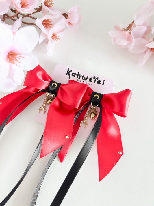 Black and red kitty moon - clip ins