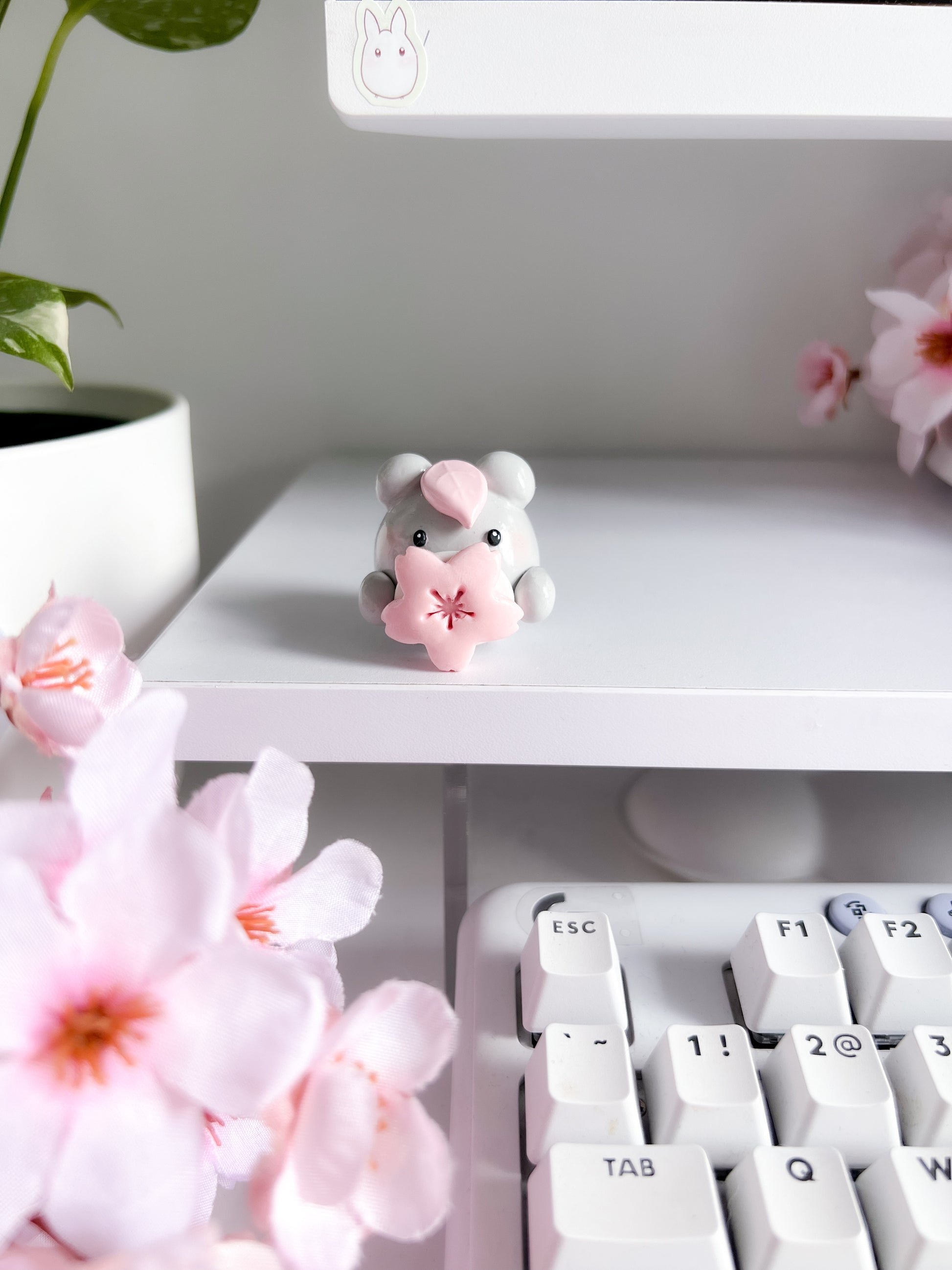 Totoro holding sakura bloom